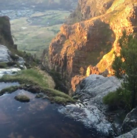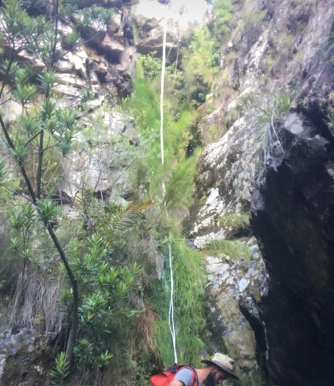 It’s 2 pm, and we are unaware of how consequential the decision we are about to make will be. Earlier this morning, two friends and I set off on a hiking adventure consisting of a five-hour steep hike up a mountain, followed by rappelling/abseiling down sixteen waterfalls and cliffs, each between 12 and 80 meters high. We began our climb at 8 am, a bit later than we hoped, at the foot of the majestic Stellenbosch mountains.
